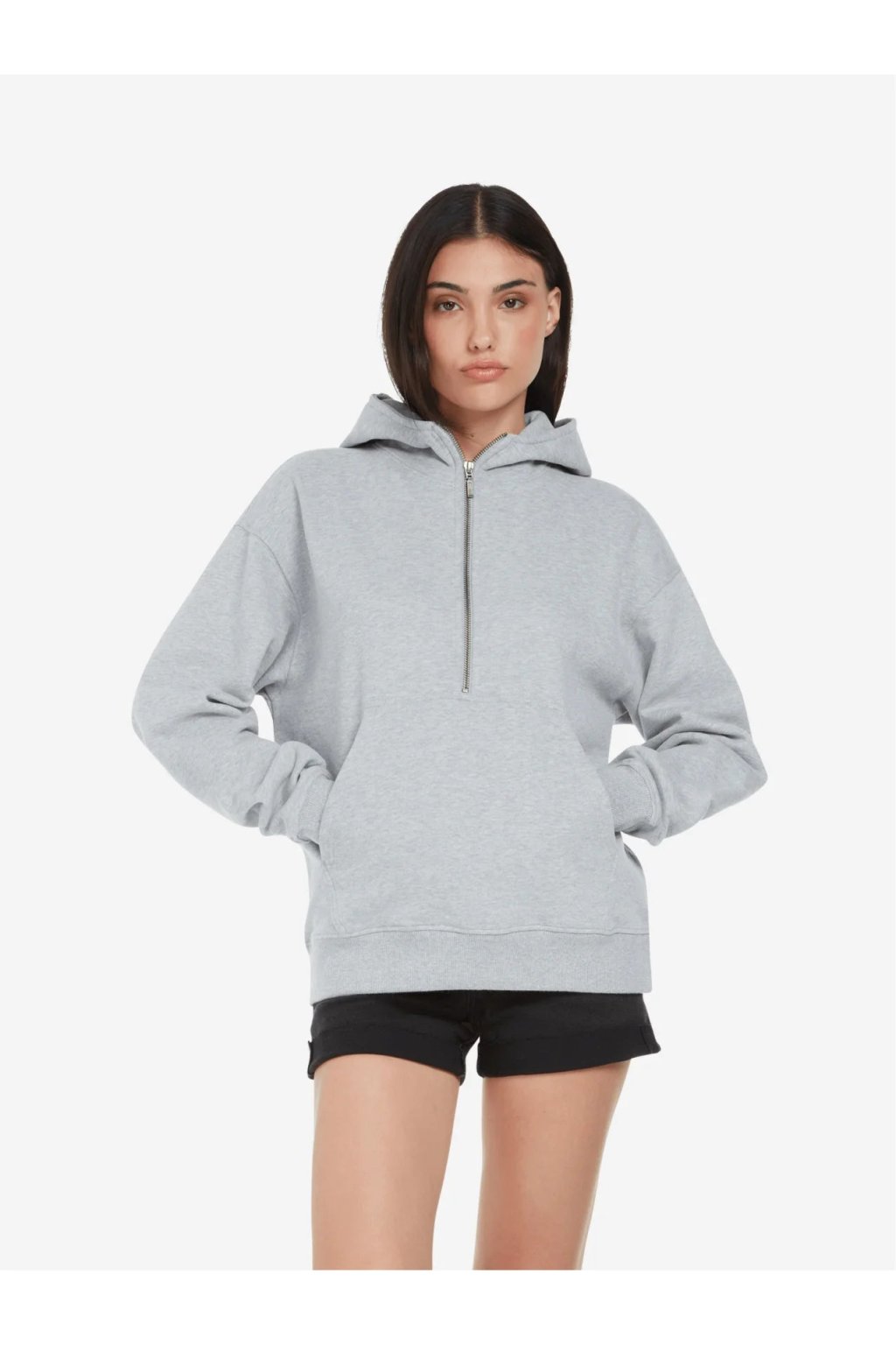 Dámska šedá mikina s polovičným zipsom "HALF-ZIP HOODIE Light Heather"