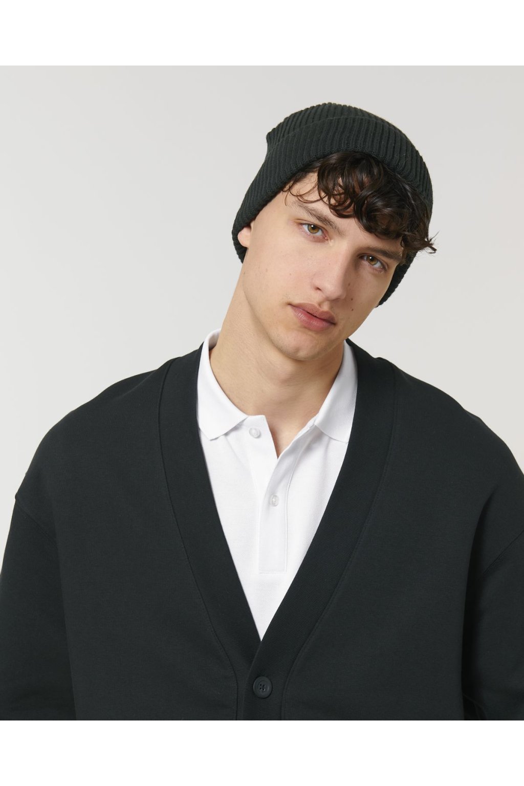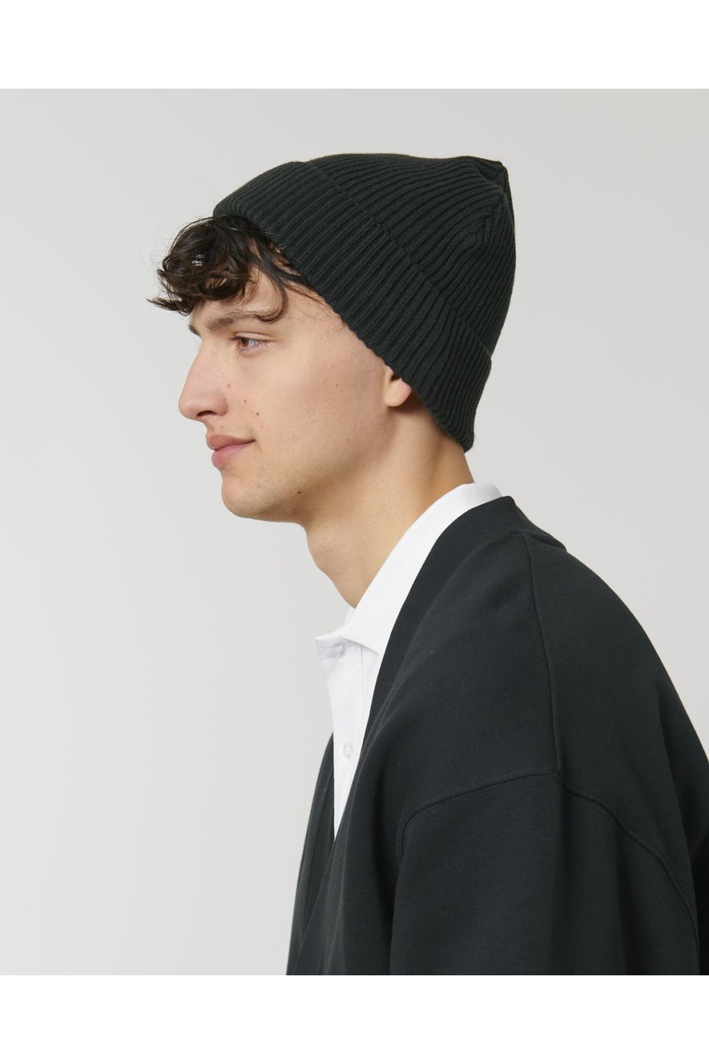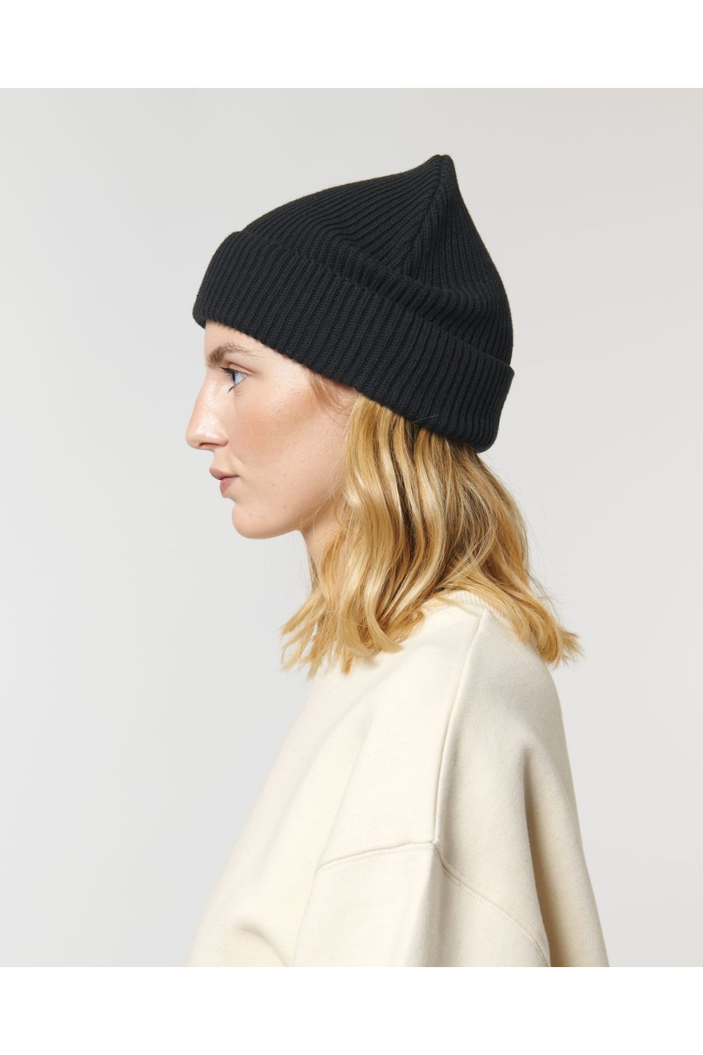 Unisex čierna čiapka z biobavlny "Fisherman Beanie Black"