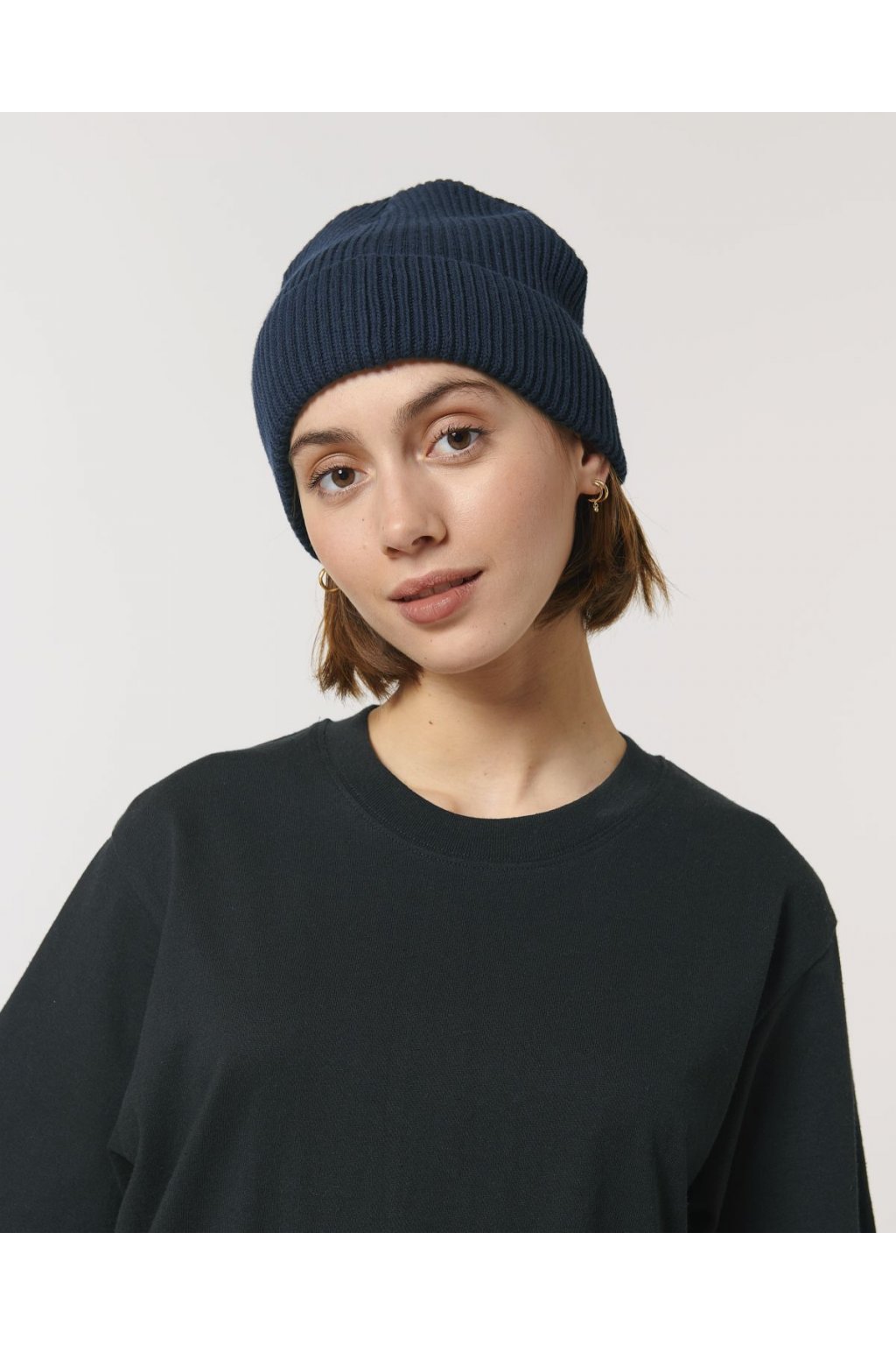 Unisex tmavomodrá čiapka z biobavlny "Fisherman Beanie French Navy"
